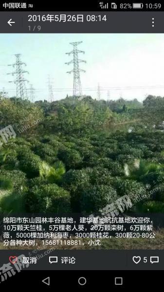 该土地位于四川绵阳,土地性质为耕地,面积:15亩,价格为:75万元,可流转30年;里面有桂花银杏,玉兰,紫薇,香樟,老人葵,海枣,蒲葵,苏铁,樱花,红梅,菩提,朴树,栾树,黄葛树,鱼尾葵,蓝花楹,红枫,芙蓉,黄葛兰,石楠,海棠